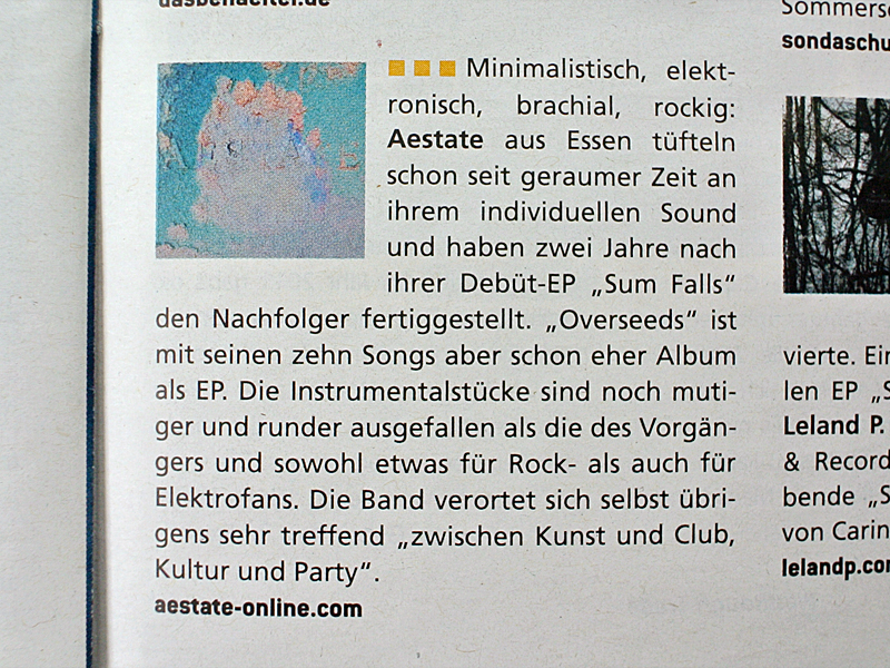 fertiggestellt. ‚Overseeds‘ ist mit seinen zehn Songs schon eher Album als EP.