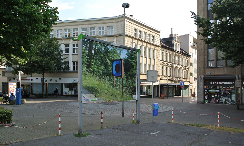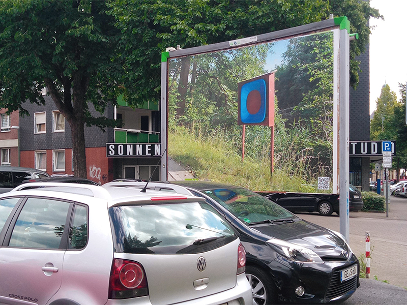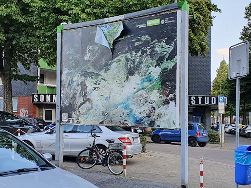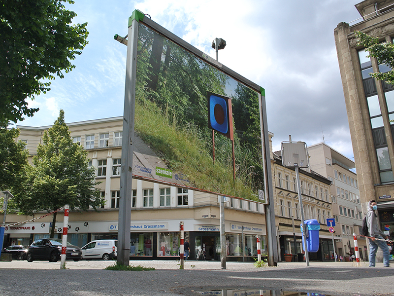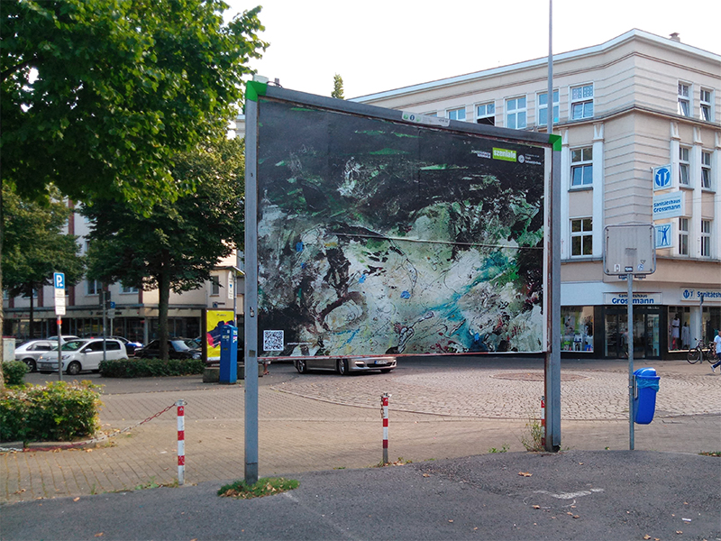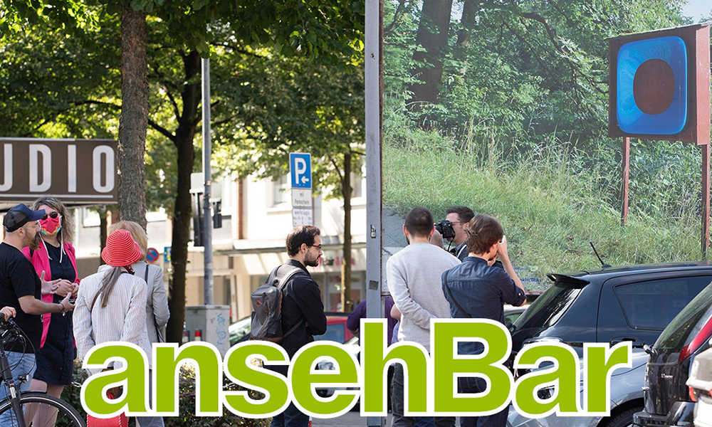 in 2017. ’happy prince’ shows the red car body of a 1989 ford probe hovering in dutch woods in autumn. art historian linda schröer states: the photograph ‘happy prince’ shows a car body floating in the middle of the forest. the title refers to the short story of the same name by oscar wilde. there, a richly gem- and gold-studded prince monument cannot bear the misery of his city any longer, allows itself to be ‘cannibalized’ down to the last treasure and thus sacrifices itself. at the same time, however, the title also alludes to the artist richard prince, who is known above all for his astronomical prizes. in the mid-2000s, prince had stripped muscle cars down or pasted them with images of women and staged the car as a symbol of freedom, self-determination and independence. ‘the press text for we don't pray for love - we just pray for cars‘ explains: more than 2,200 kilometres of motorway run through the state of north rhine-westphalia, with a total road length of almost 30,000 kilometres, making up about 13% of the total german road length. the average daily traffic in nrw is significantly higher than the national average. in short: the ruhr area as a conurbation is more mobile than ever. especially in times of climate change, however, individual transport should be critically examined, and its advantages and disadvantages weighed against each other. the role of the car as a status symbol should be questioned with a view to the future of all of us. faster, bigger, better - how heavy can and may such attributes weigh today? an exhibition of contemporary art from the ruhr, münsterland and rhineland on the subject of mobility and the car as a status symbol. the opening is scheduled for september 18, sven piayda is expected to be present. more info at the bottom of this post. ![]() you might remember roger rohrbach´s name from the catalogue escorting last year´s annual show of gelenkirchen based artists. here he wrote a pretty complex text on the exhibited video piece 'heliodorus'. back in june our friend and collaborator karla köhler opened her 2020 covid-19 crisis postponed solo show at edel extra in nürnberg. the show featured next to numerous pieces the collaborative work ‘granada interface (the lost tapes)’, a video for record of tides directed by sven piayda exploring köhler´s urban world designs. now you will have the change to visit the show virtually again, guided by karla köhler herself. you may also like the record of tides track sounding through the exhibition as endless loop. the documentary has been shot by alex ciocea using a 360° camera delivering a wide-angle view on the exhibition. additionally, köhler and piayda are recently discussing new collaborative works. ![]() the well appreciated ‘ansehBar’ art show in public space has taken sven piayda´s ‘lifeguard’ off display now. as the show starts into its second month, further artists will take over and the current works vanish. ‘lifeguard’ is demounted and replaced by a work by one of the artists of the second run. still we do not know who will get this prominent place. sven piayda´s contribution ‘lifeguard’ was placed at a prominent position. the billboard could be found at augustastraße/weberstaße in downtown gelsenkirchen. the piece incidentally interacted and mirrored its surrounding: the trees in the picture seemed grow into the trees on the street, the ‘lifeguard’ surrogate had the same colour as the nearby trash bin and the pillars of the lifeguard´s housing corresponded with the billboard´s pillars. the places had been chosen incidentally but sven piayda and everyone at the studio were very happy with this place. find all collected pictures of the work and the press conference over at the exhibitions section. above you see a snapshot taken during the art walk with gelsenkirchen major candidate karin welge (spd) with piayda on the left talking about the piece. based upon the problematic issue of impossible big openings and the loss of opportunity for artists to show and sell work the gelsenkirchen based szeniale organisation developed 'ansehBar' as answer to the covid-19 crisis, a billboard based outside exhibition project curated by nancy e. watt and christoph lammert. with this action we don't just want to bring beautiful colourful pictures into the city. it is above all about strengthening and sharpening the perception. if art and culture cannot be present in public space to the usual extent, or if no (regular) form of organizing presentation is possible, it is necessary to fill and enliven this space in a different way. art and culture are vital, they are building blocks of a successful society, signs of democratic coexistence and - under all circumstances - to make them visible in public space, the curators state. 'ansehBar' wants to make art in times of distance rules experienceable in an unusual way: wherever else advertising can be seen, artistic works will be shown from july to september 2020. in cooperation with the department of culture of the city of gelsenkirchen, the förderverein szeniale invites up to 30 artists from the gelsenkirchen independent scene to present themselves publicly and strikingly in the urban space. for this purpose, the media company ströer (initially) 15 large-format billboards will be made available free of charge. the posters form a gallery in public space which, as a satellite project of the festival 'szeniale', brings art and culture from different fields into the urban space: in addition to works from painting, photography and graphics, positions from film, music, theatre, dance and literature can also be creatively transferred to the poster format. the immediate experience is supplemented by digital information that can be called up on each poster with a smartphone via a qr code. a map helps those interested to find their own way through this open-air exhibition on foot or by bicycle. for the 'ansehBar' group show, sve